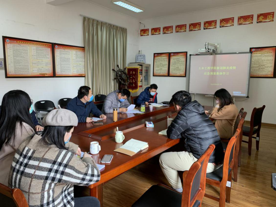 4月1日下午,土木工程学院全体学生工作干部在一教409会议室集体学习学校新冠肺炎疫情应急预案等相关政策文件。学院学生工作办公室主任、分团委书记王中帅以及全体辅导员参加学习,会议由党总支副书记邵先锋主持。