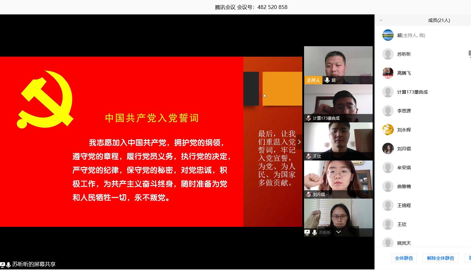 本科学生第四支部通过“云”端会议,上午10时,支部书记王超带领参会党员共同起立,默哀3分钟,对抗击新冠肺炎疫情斗争牺牲烈士和逝世同胞表示深切哀悼。随后,计算172班苏昕昕,向参会人员介绍清明节“感恩纪念”和“催护新生”的文化内涵,倡导健康文明祭念。通过山东省近两年牺牲烈士的事迹,致敬和平年代奋不顾身的英雄们;通过回顾党的历史,永远铭记革命先辈的英名和丰功伟绩,纪念传承红色基因。会上,向广大学生党员发出四点倡议:错峰出行、预约祭扫,绿色低碳、文明祭扫,传承孝道、弘扬美德,带头践行、引领新风。整个活动庄严有序。最后,王超带领大家重温入党誓词,坚定理想信念,不忘初心,牢记使命。