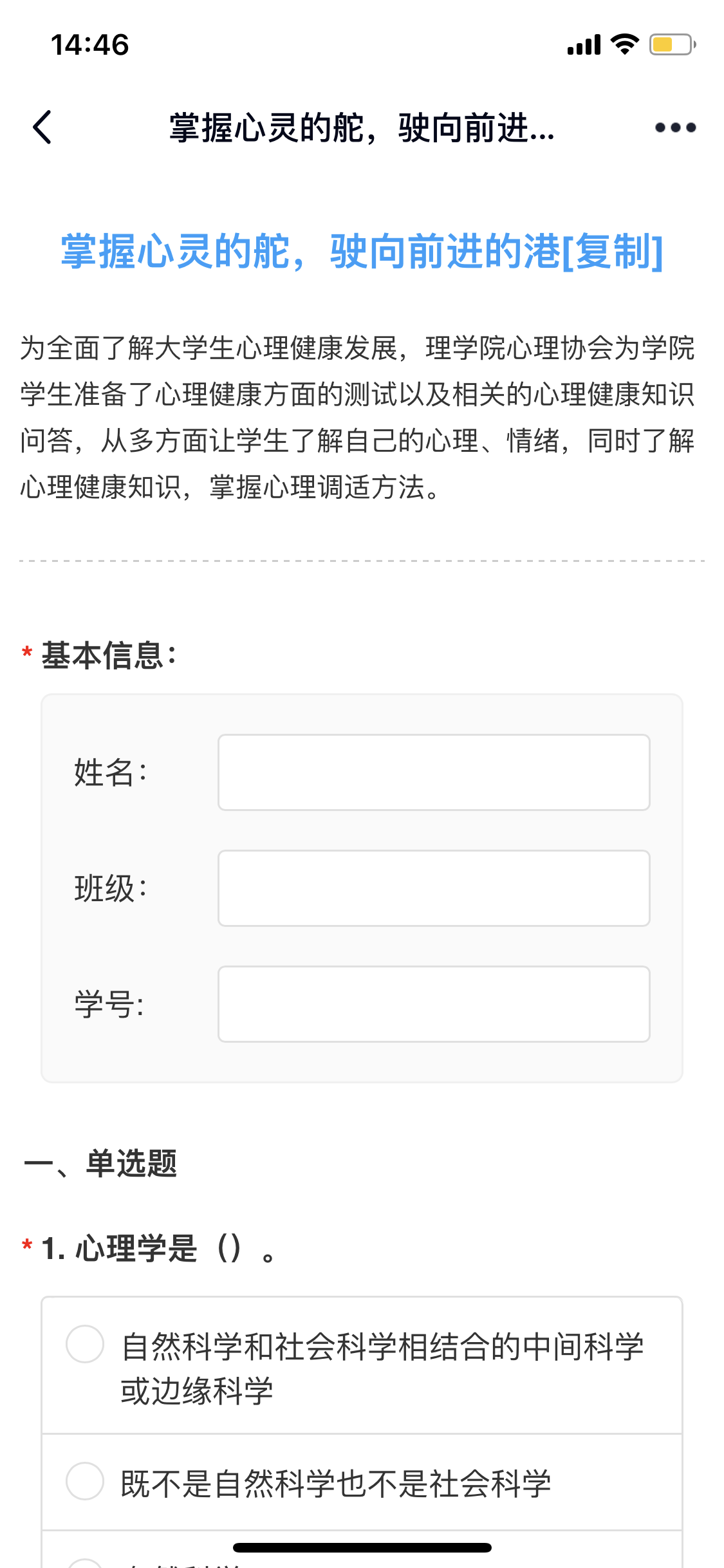 为进一步普及心理健康知识,帮助学生了解心理健康重要性,提高自身心理素质,理学院心理协会于3月30日-4月7日,通过线上互动的方式,举办了“掌握心灵的舵,驶向前进的港”为主题的心理健康知识竞赛。