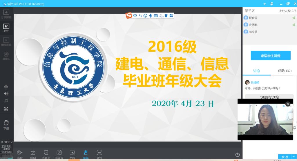 会议通过腾讯课堂开展,由2016级毕业生辅导员孙海英主讲,对毕业生自主择业推荐表的使用,报到证、档案、户口、党团关系的转接,山东高校毕业生就业信息网、就业协议书的使用等问题进行再解释,需要注意的问题进行再提醒。并针对同学们提出的相关问题,例如不同公司不同的签约要求、省内外档案派遣、纸质三方就业协议的填写等问题,进行一一解答。同时,孙海英强调,春招的“金三银四”求职黄金期即将过去,外加当前疫情的影响,落实就业单位的同学要尽快完成签约流程,以免出现公司缩招,错失就业机会;还未落实就业单位的同学,抓紧求职黄金期的尾巴,投递简历,做好笔试、面试的准备;对于准备考研复试的同学,充足准备好复试科目的学习并做好线上复试的准备;对于准备考研调剂的同学尽快寻找可调剂院校,做出合适的选择。