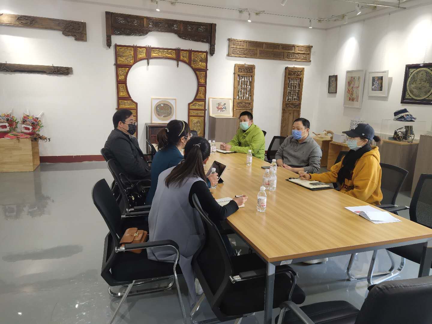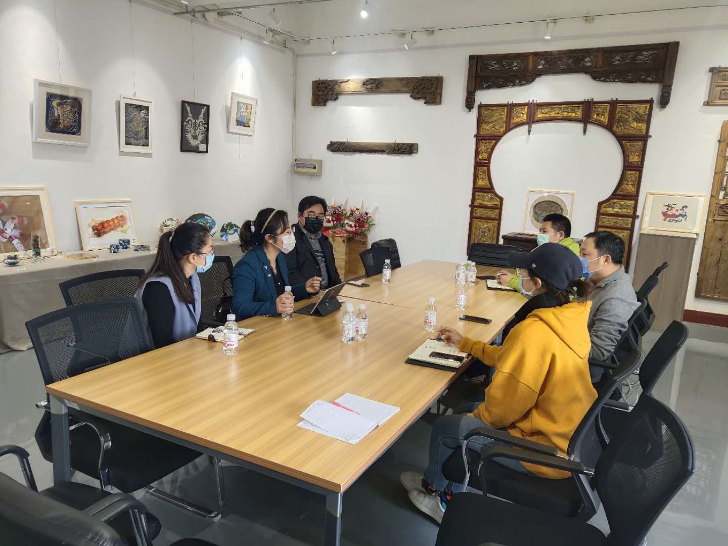 4月27日上午,青岛纺织谷文化传播有限公司与艺术与设计学院在市北校区2号教学楼展厅举行了创新创业交流座谈会,共同探讨了校企合作发展事宜。青岛纺织谷文化传播有限公司总经理姜先才及公司工作人员、艺术与设计学院党总支副书记徐佐君、学工办主任分团委书记王俊富、辅导员舒文、王凯参加了此次座谈会。会议由徐佐君主持。