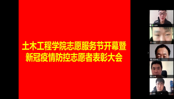 为弘扬奉献、友爱、互助、进步的志愿者精神,号召同学们积极学习新时代雷锋精神,踊跃投身志愿服务当中做正能量土木人,3月18日下午,土木工程学院线上举办第二届志愿服务节开幕暨新冠疫情防控志愿者表彰大会,旨在表彰在疫情防控工作中表现突出的个人,鼓励更多青年大学生参与到志愿服务中来。通过典型的引领示范作用,学院共有114名同学先后投身到疫情防控工作中,收到各地基层社区感谢信50余封,产生了良好的社会影响。