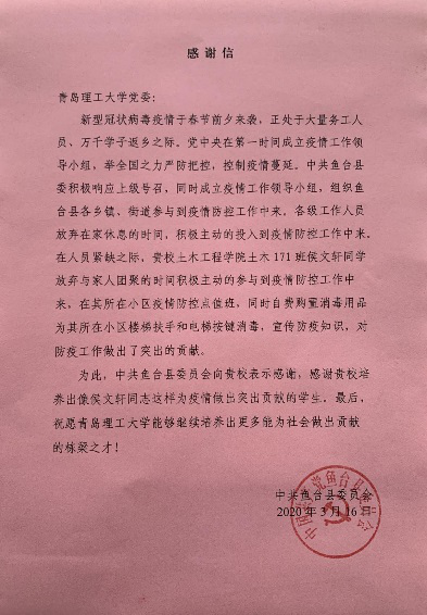 在这个不平凡的假期中,返乡的土木志愿服务队成员们积极投身于家乡疫情防控志愿服务中,践行志愿服务精神,勇于担当作为,让青春在疫情防控一线接受“洗礼”,展现出新时代大学生的责任担当和青春风采。