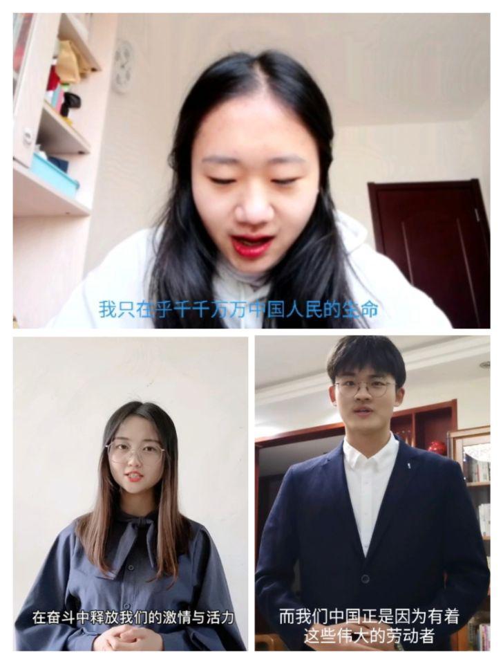 像这样的微宣讲活动,商学院有100场。学生们有的录制了讲述抗疫劳动者事迹的线上演讲视频,发到班级群里;有的通过云端上的视频微团课,向全班同学讲述疫情中一位位伟大中国劳动人民的故事;还有的通过云端班会,用一段段语音表达自己对于疫情期间劳动者忘我工作的崇敬。