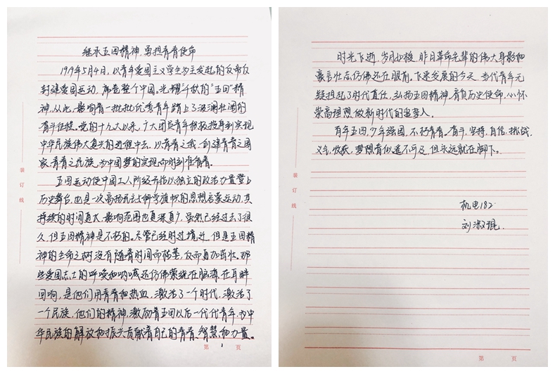 为纪念五四运动,弘扬爱国、进步、民主、科学的五四爱国主义精神,5月3日至7日,高等职业学院举办了“绽放战疫青春·坚定制度自信”主题征文比赛,2018级、2019级学生参加。