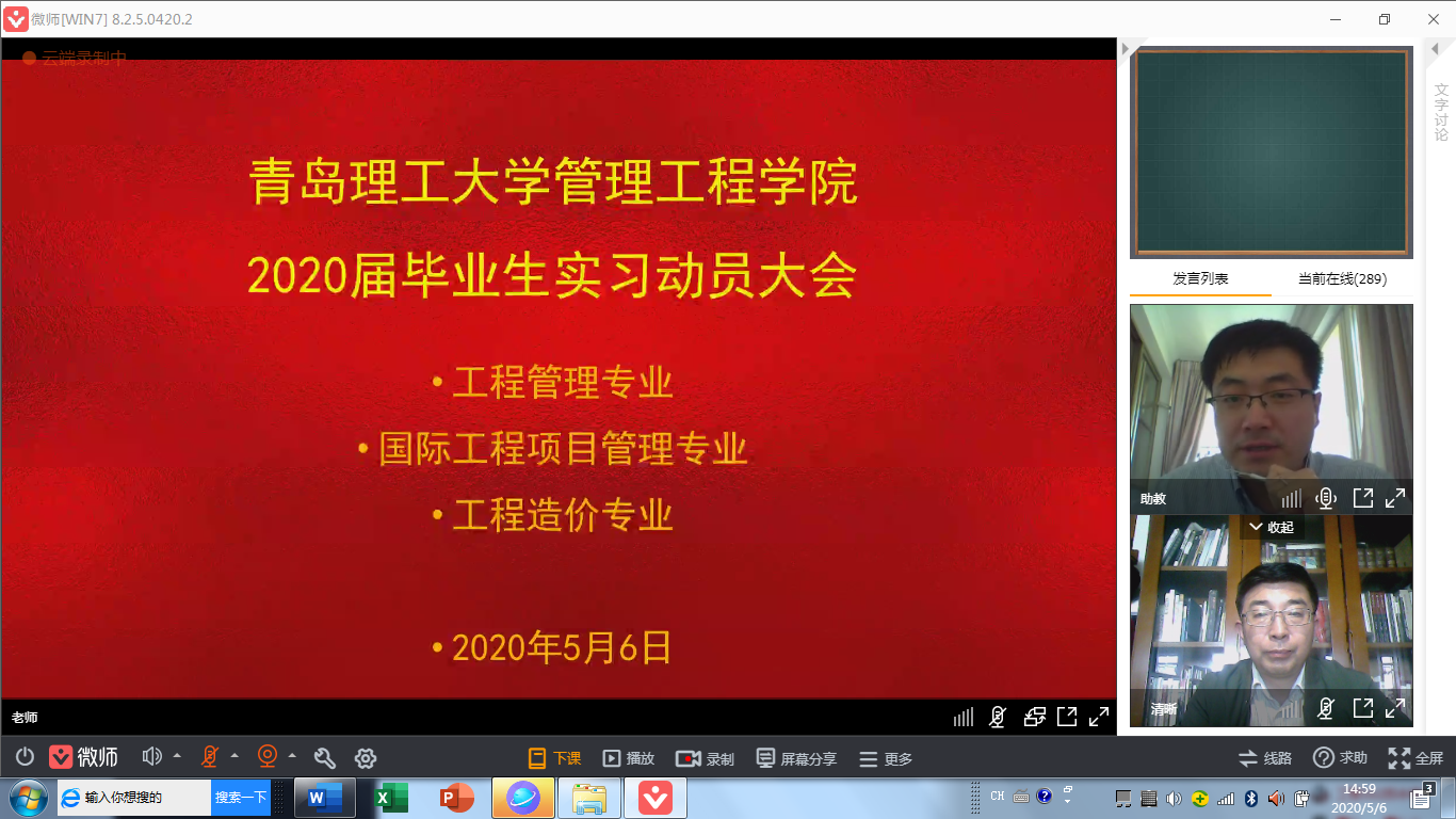 5月6日,管理工程学院召开了2020届工程管理、国际工程项目管理、工程造价本科毕业生线上虚拟仿真实习动员会。