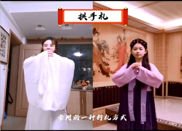 作揖礼倡导返校见面新礼仪:作揖礼作为中华传统礼节,在中国已经有2000多年的历史。财管195班王蕴颖、郝子涵同学身着古装,为大家演示并讲解了不同场合下的行礼方式,倡导大家返校后见面行作揖礼。在当下特殊时期,作揖礼不仅是一种防控措施,还有传承文化的作用,能让学生更好地了解中国文化,感受中华民族礼仪之邦的传统。