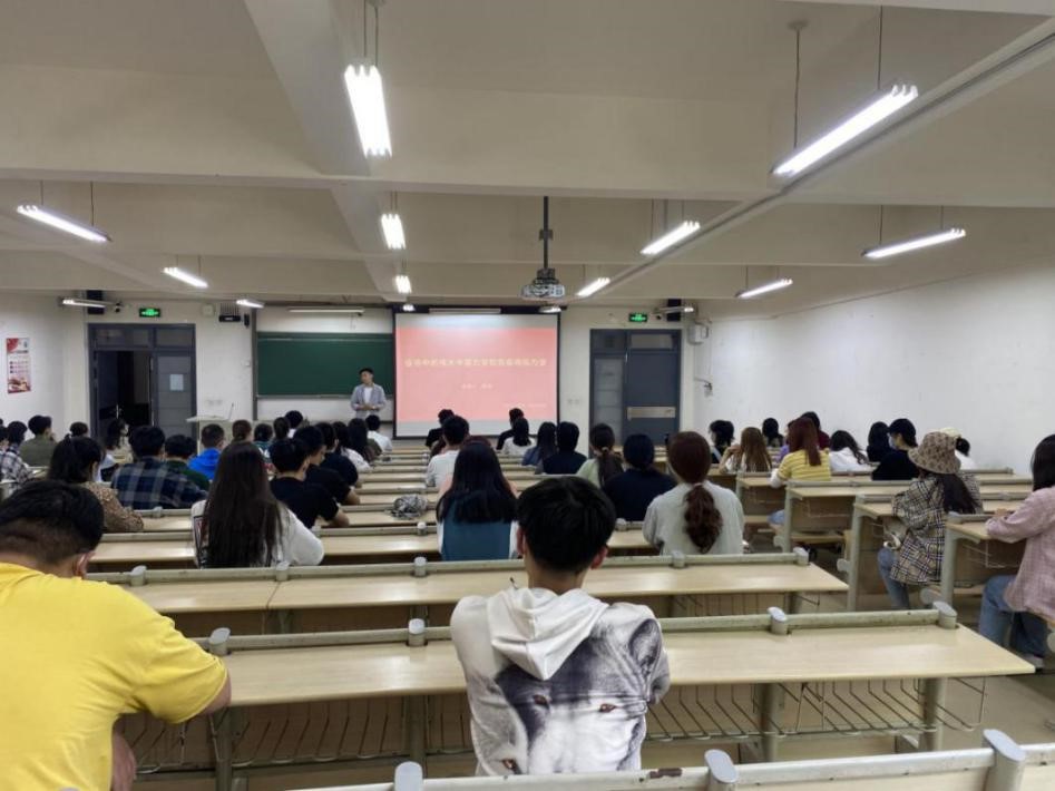 为贯彻落实学校关于组织收看《齐鲁大讲坛——开学第1讲》通知要求,进一步加强大学生思想政治引领,切实做好疫情防控和返校开学工作,6月5日中午,商学院利用云端和线下两个平台,开展以“疫情中的伟大中国力量和青春商院力量”为题的“开学第一课”专题系列讲座。本次讲座由商学院辅导员薛诚担任主讲,商学院“抗疫明星”李瑛韬、王春翔、李翼飞、温馨在本次讲座中分享了自己的抗疫经历,商学院学生会和分团委全体成员参加本次讲座。