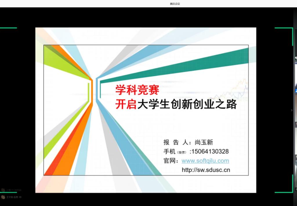 第十八届山东省大学生软件设计大赛即将拉开帷幕,为促进大学生创新创业,加强学生对大赛的认识和了解,激发学生参赛积极性,6月10日晚,信息与控制工程学院举办“第十八届山东省大学生软件设计大赛命题解读”线上专题讲座。讲座力邀山东省大学生软件设计大赛组委会运行负责人、济南计算机学会常务副秘书长尚玉新,山东省大学生软件设计大赛命题评审专家马兴录,山东省大学生软件设计大赛命题评审专家俞翔,山东省大学生软件设计大赛命题评审专家田丰收,山东省大学生软件设计大赛命题评审专家周高典等多位专家学者主讲。学院院长周玉国、学工办主任兼分团委书记张英华、大赛专业指导教师李兰、辅导员贾戈及信息与控制工程学院230余位学生参与本次讲座。