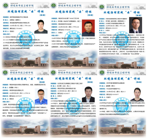 在学院领导、环境工程系教师的协调和校友及合作单位的大力配合下,此次“云端”实习邀请到了与学院有长期产学研合作基础的北京建工环境修复股份有限公司李书鹏副总经理(我校环境工程专业1999届校友,教授级高工)、青岛晨添噪声控制技术有限公司胡孝辰董事长(我校环境工程专业2011届校友)、青岛海泊河污水处理厂安全生产运营部部长李学强高工(我校1996届校友)、青岛市市政公用科研院设计室张文勇主任(我校1997届校友)、青岛热电股份有限公司张国鹏科长和生态环境部中日友好环境保护中心赫晓霞博士等六位行业专家,分别为环境类专业学生开展了系列主题讲座。