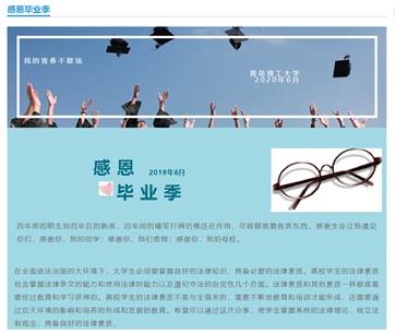 “云毕业”系列活动的开展旨在为毕业生搭建一个以文明、回忆、感恩、传承与展望为主线的“云平台”,一述理院情谊,一展理院风采,打造不一样的“云毕业”季。一是在易班云平台,展示毕业生的风采,敞开心扉用话语传递最想感恩的人、传递学习经验、感悟成长与收获、寄语学弟学妹及理学院的美好蓝图,毕业生还可以通过易班云平台将个人学习、生活物品赠予学弟学妹们,“旧物新用”暖心传递校园文明,增强毕业生成就感,发挥榜样引领的辐射带动作用,营造和谐文明的校园文化氛围。二是通过“线上采访+投稿”的方式,征集临别赠言、创意视频,组织同学们共同寄语毕业生,为2020届毕业生在疫情特殊期间送去最真诚的祝福,并借此契机请教学习生活上的经验。理学院易班工作分站策划并制作视频合集,旨在纪念此次活动中最难忘而又与众不同的回忆,定格青春画面,让毕业生带着学院的真挚祝福更好的走向社会。