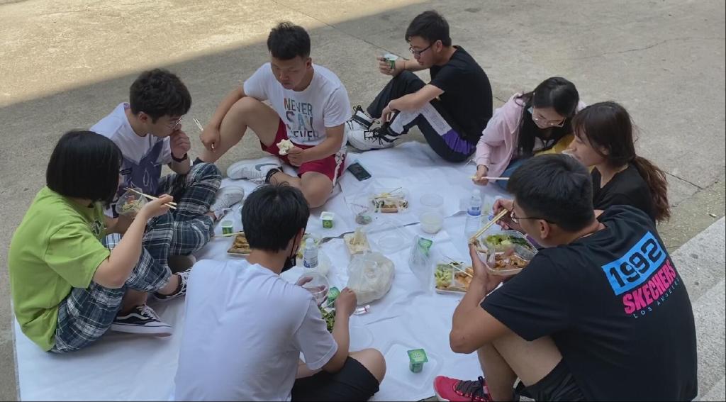 为了让毕业生们感受到校园的温暖,高职学院还做好毕业生离校氛围营造,为毕业生留下美好的回忆。校园里随处可见的离别赠言横幅,为同学们特别定制的毕业纪念品帆布包,里面是一件专属文化衫,这些都为毕业生们带来了很多感动。不仅如此,各个班级的班主任老师们也来到现场,与同学们一一话别。建工173班的班主任叶明亮老师与同学们最后一次召开了一次特殊班会——大家一起捧着学院提供的午餐围坐在一起吃了一顿特别的午餐。叶老师表示:“虽然与同学们只有这短短一天的相聚时光,但不管过去还是现在还是将来,我永远与同学们在一起,在青理期待与大家的再次相遇。”