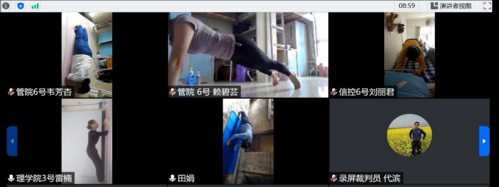 6月10日,一场别开生面的运动会在“云端”举行。本次比赛依旧采用腾讯会议现场直播的形式进行,每位现场裁判对应一位参赛选手,以保证比赛的公平公正性,并由工作人员录屏存档。