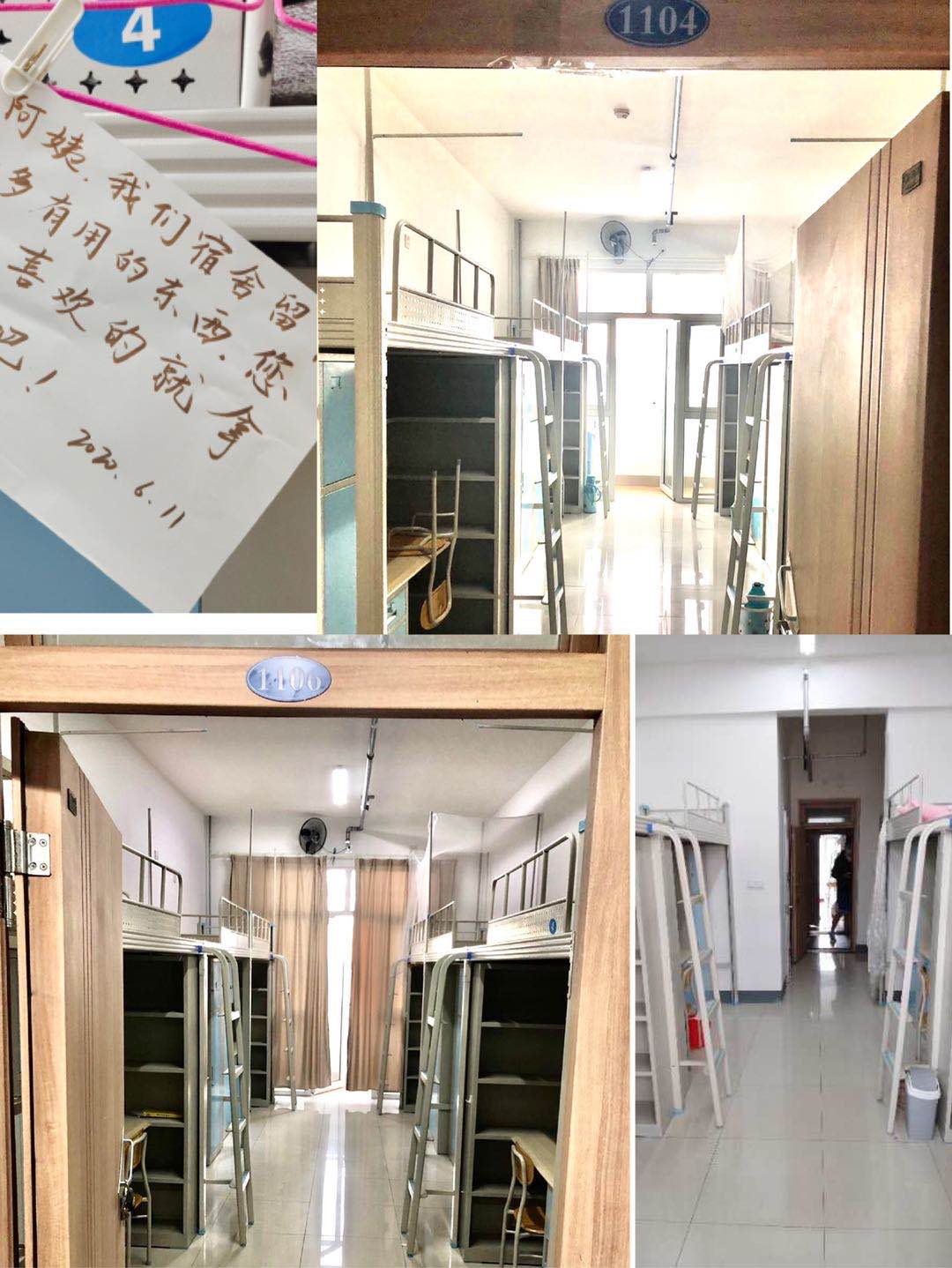 为深入贯彻学校安全教育管理工作的相关规定,积极响应校院文明离校号召,营造温馨和谐的毕业氛围,在毕业生离校之际,6月12日下午,人文与外国语学院开展“留一间雅室,驻一片真情”文明离校活动。活动中,人文与外国语学院党总支副书记王振,分团委书记、学工办主任马松,辅导员陈刚、贾舒文、王才升检查走访2020届毕业生宿舍,为即将离校的毕业生送去亲切慰问。