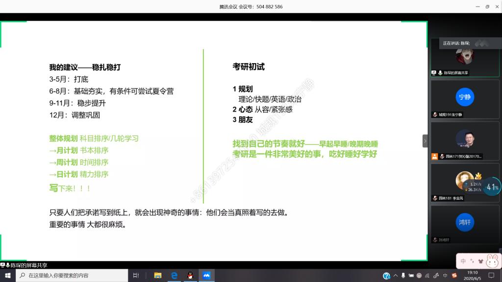 为提供一个更好的考研交流平台,解答低年级同学在考研方面存在的疑惑,近日,建筑与城乡规划学院举办风景园林专业线上考研经验分享会。本次经验分享会由学院学生工作办公室主任、分团委书记王鹏飞主持,风景园林专业考研成功的学长学姐为正在准备考研的同学们讲述自身经历,交流切身体会,分享宝贵经验。