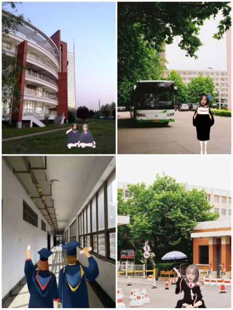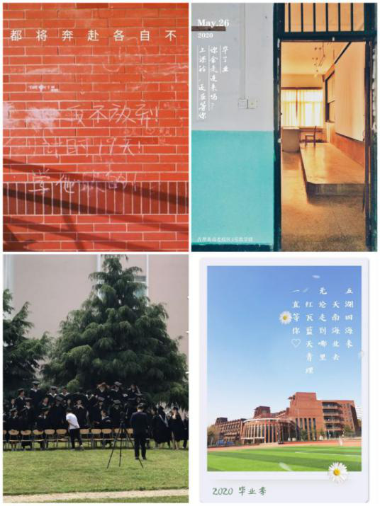 疫情特殊时期,人文与外国语学院特别推出云毕业拍照模板,为毕业生与校园合影提供素材。每张照片“打卡”一个具有纪念意义的地点——学校大门、二教楼、图书馆、体育场,校园的各个角落都留下了毕业学子曾经成长与奋进的身影,承载着大学四年满满的回忆,营造出真实感与回忆感。创意满满的“云毕业”拍照模板不仅为毕业生与母校的合影增添了趣味,唤起了同学们心底最纯粹、最美好的情感,也为其提供了重温四年大学生活展现自我的新平台。