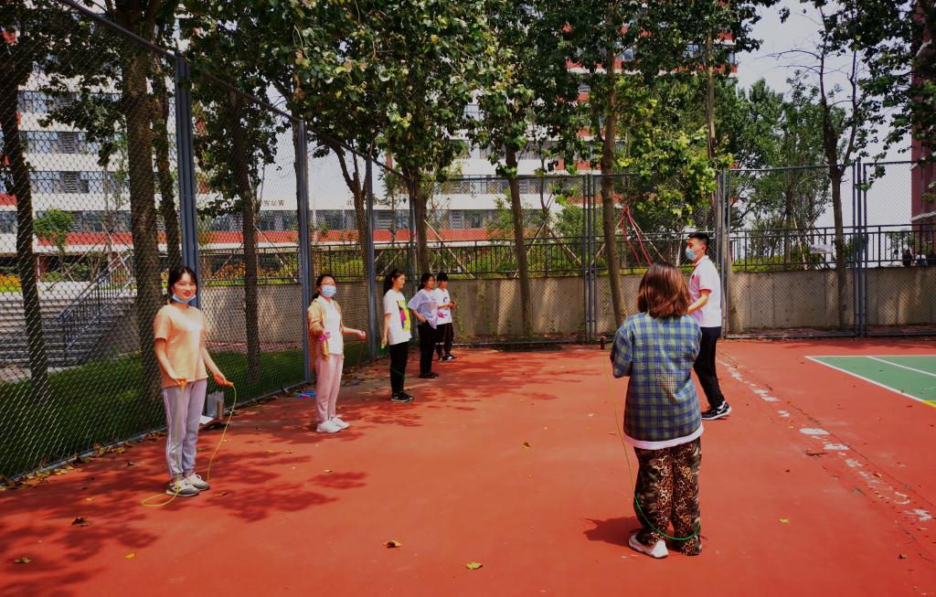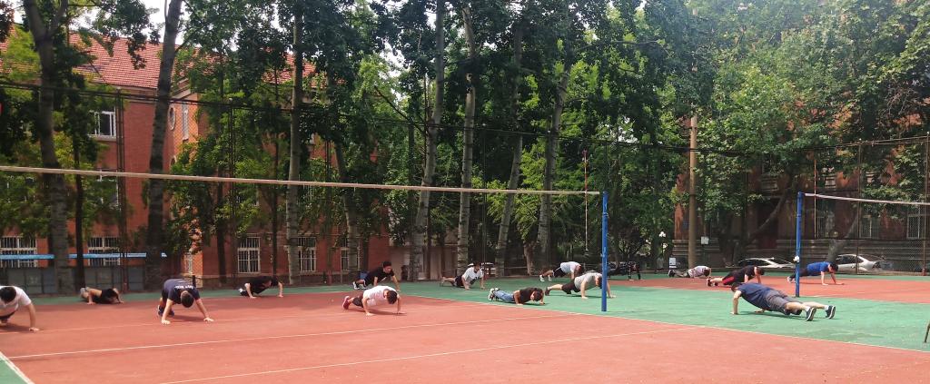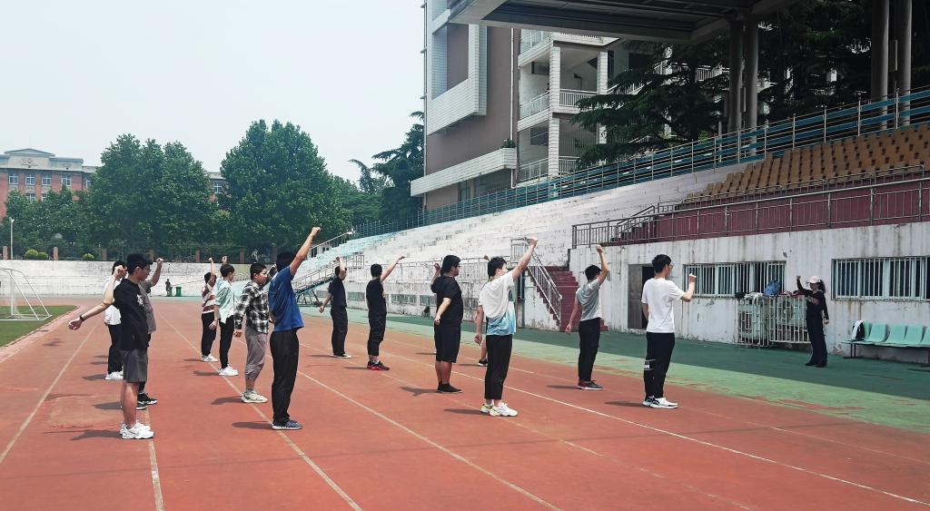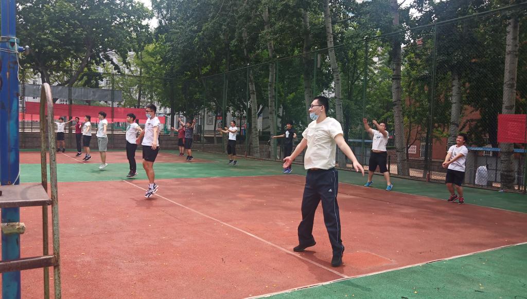 四十五分钟后,返校的学生回到运动场。为落实防控要求,原室内课教学全部调整室外活动,老师们按照体育教学部的要求,不密集站队,通过低强度的慢跑和充分的准备活动循序渐进地将同学们身体状态调整到适合身体素质练习的状态中,球类课程将对抗性比赛调整为俯卧撑、跳绳等体能素质练习。六个月后重新回到运动场的学生情绪高涨,各种趣味的素质练习提高了同学们锻炼身体的兴趣,对老师们新的授课方式纷纷给予好评,课堂效果良好。在锻炼后的拉伸运动中不知不觉结束了愉快的课堂学习。