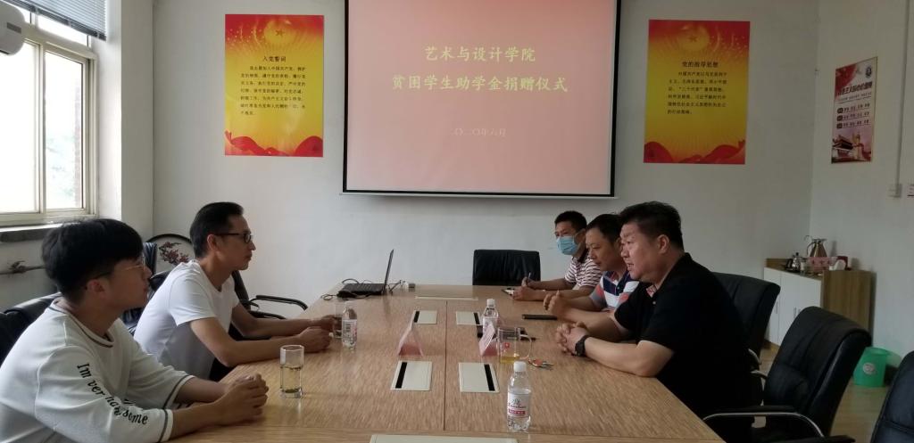 6月19日上午,青岛文博室内设计顾问有限公司总经理李文波到艺术与设计学院向贫困学子捐赠助学金,学院党总支书记、院长孙波,党总支副书记徐佐君、辅导员王俊富、刘芳兵与受资助学生一起参加了受助仪式。