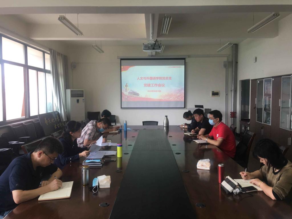 6月18日上午,人文与外国语学院党总支在主教学楼A410学院党员活动室召开党建工作会议,总结了前期学院的党建工作和部署了接下来学院党建工作任务。人文与外国语学院党总支书记王新主持会议并讲话,党总支副书记王振、总支委员会委员、党支部书记委员、学院工会负责人、分团委负责人等参加会议。