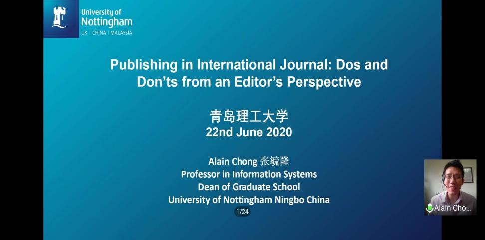 6月23日下午,商学院举办西海岸商学论坛(第十四期)学术(线上)讲座。本次讲座邀请宁波诺丁汉大学研究生院院长、博士生导师张毓隆教授担任主讲,宣讲主题为“国际期刊出版的应做与不应做”。商学院副院长云乐鑫教授及校内外师生聆听本次讲座,电子商务教研室朱文龙副教授主持本次讲座。