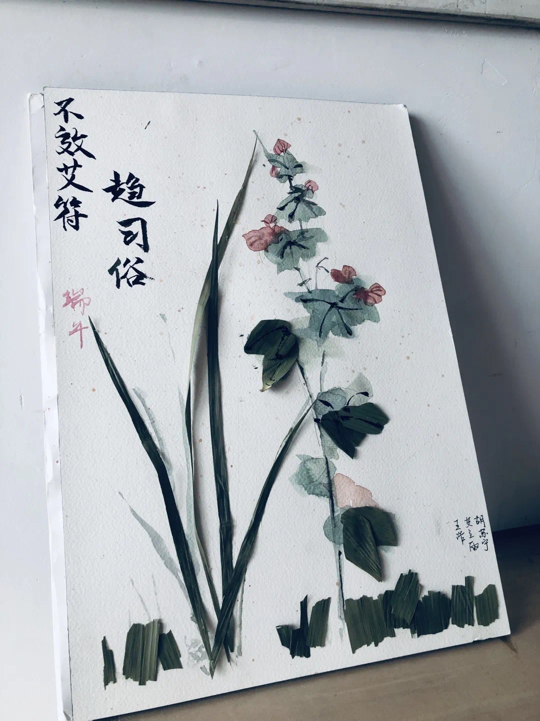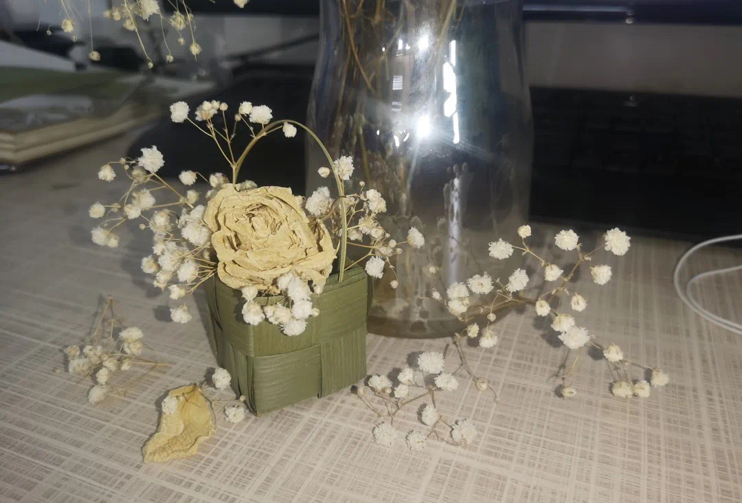 在本次大赛过程中,同学们的创意设计作品百花齐放,各具特色。建学193班的王子妍和刘继超合作创作的粽叶杯垫,巧用粽叶叶脉作为支撑,用绑粽子的棉线做外围固定和装饰,可谓是物尽其用,开发出了粽叶的另一种实用途径。建学181班的胡苏宁、王浩和建学184班的艾立雨利用粽叶作画,“不效艾符趋习俗”,于粽叶飘香中挥洒着艺术的灵感,诉尽历史,赞颂屈原,“千载贤惠同瞬息,几人湮没几垂名”。手工亦是每一位建院学子必须掌握的基本功,城规192班的张雁南将粽叶折成玫瑰,栩栩如生,俗话说“赠人玫瑰,手有余香”,这一支粽叶玫瑰,留下的是浓浓的粽香吧。
