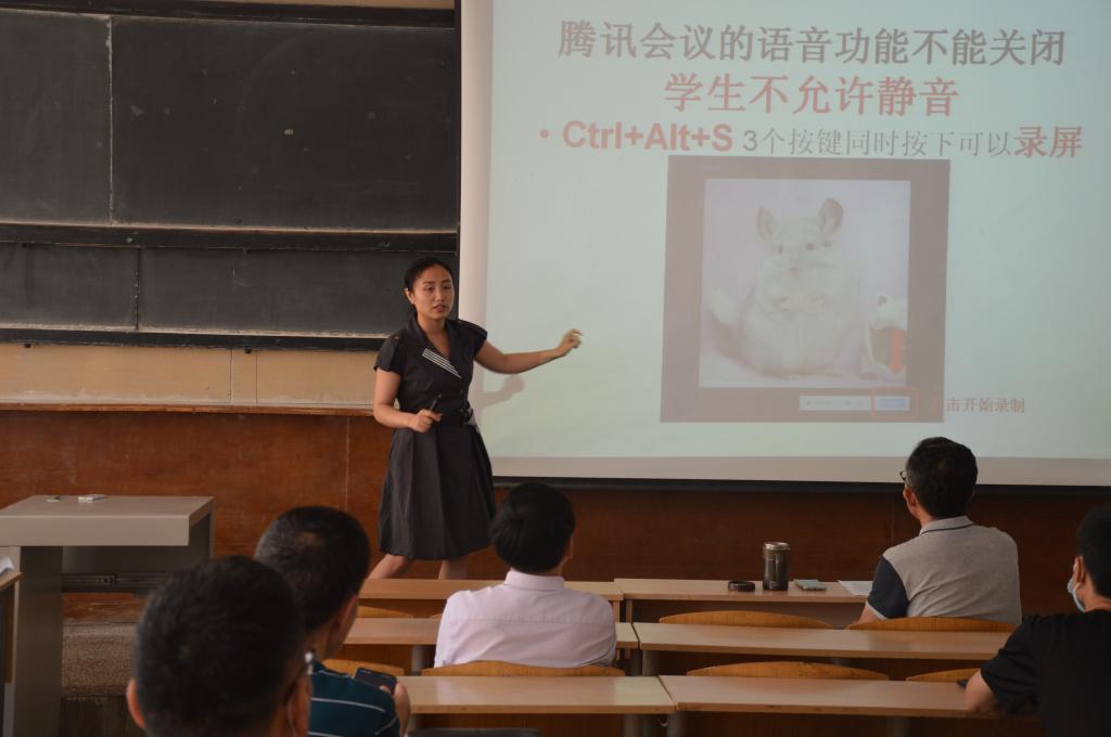 院长陈国庆首先发言,他强调了对期末线上监考工作重要性的认识。每位监考教师要切实认识监考工作的重要意义,切实为每位考生提供一个公平、公正的考试环境。这是在疫情防控工作常态化,首次进行的全校规模的思政课考试,各位老师要把考试的前期各项准备工作做实、做细,确保考试工作的顺利进行。华章琳总结了本学期以来线上的教学工作,各位老师辛勤的付出,克服线上教学的各种困难,取得了学生们对教学效果的一致好评。在最后的考试环节,各位老师要以高度的责任心和使命感,完成好监考工作。学院教学秘书辜文瑶对线上考试的各个工作环节进行了细致的讲解。针对老师在培训过程中提出的问题,辜文瑶一一进行了讲解和解释。