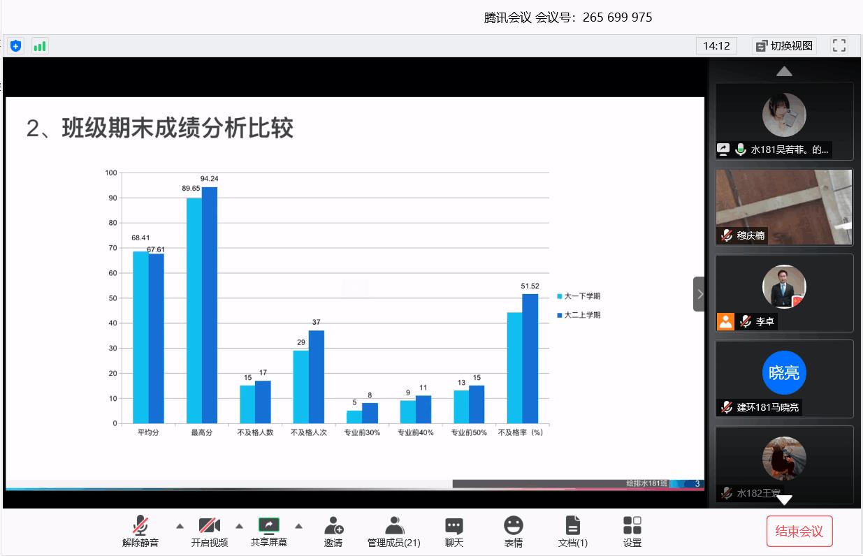 为了建设优良学风班风,近日,环境与市政工程学院利用腾讯会议平台举行了学涯学业指导推进交流会。参加此次会议的有环境与市政工程学院党总支副书记邵长飞、学工办主任兼分团委书记张恬、18级各班级班主任以及全体班长和团支书。辅导员李卓主持会议。