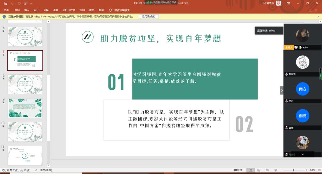 7月10日—7月15日,信息与控制工程学院分团委组织开展了“决胜脱贫攻坚,实现百年梦想”主题团日活动。