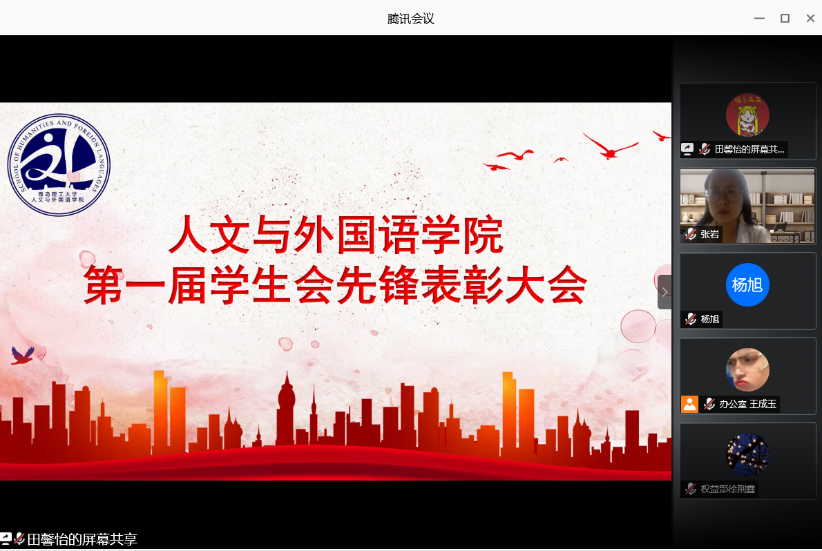 为表彰先进,传承作风,充分发挥先锋榜样带动作用,进一步增强学生干部的自豪感,增强学生会全体成员的集体荣誉感。2020年7月10日19时,人文与外国语学院以腾讯会议为线上载体,举行人文与外国语学院先锋答辩大会暨表彰大会,学工办主任、分团委书记马松莅临指导,学生会全体成员参加本次大会。