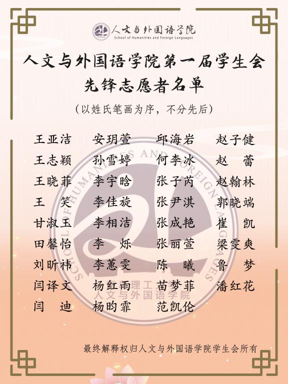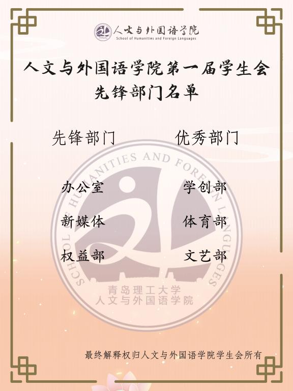 本次先锋答辩大会共设先锋志愿者答辩大会、先锋部长答辩大会、先锋部门答辩大会三部分。在答辩环节中,先锋部长、志愿者答辩人从部门认识、能力提升、未来规划等方面进行展示。先锋部门答辩人则从部门建设、活动开展情况、特色工作、志愿者培养及未来展望等方面进行展示。展示结束后,评审团进行提问并打分。随后,根据答辩情况评选出人文与外国语学院第一届学生会先锋志愿者、先锋部长、先锋部门名单。
