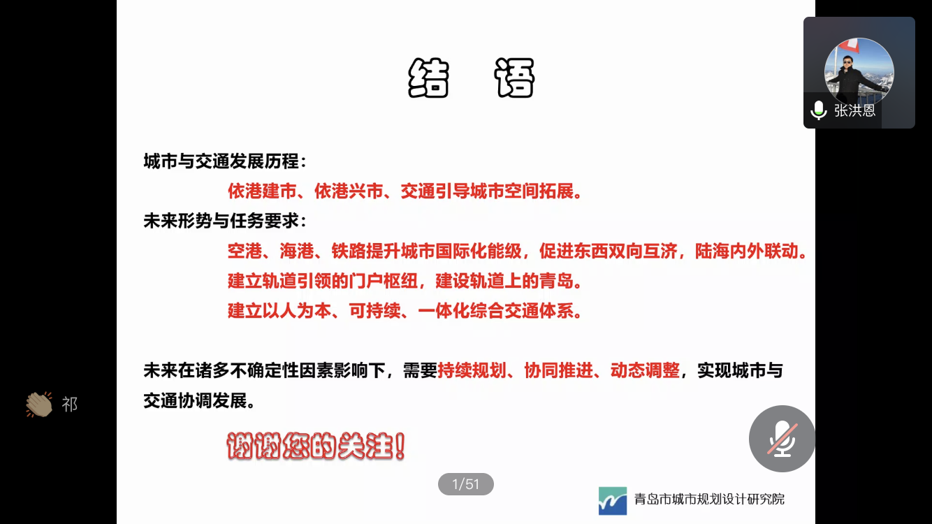 应我校建筑与城乡规划学院邀请,青岛市城市规划设计研究院副院长,教授级高工马清于近日通过腾讯会议为同学们开展题为“青岛城市与交通发展回顾与展望”的讲座,吸引了建筑与城乡规划学院200余名师生参加。