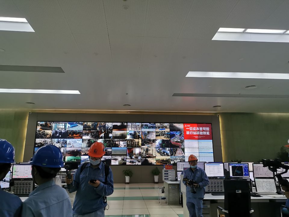 在简单介绍企业情况之后,师生一行进入中控室参观。监控画面遍布整个墙面,实时监测工厂内部环境变化,十分震撼,让同学们体会到了中石化全体员工工作的严谨与细致。