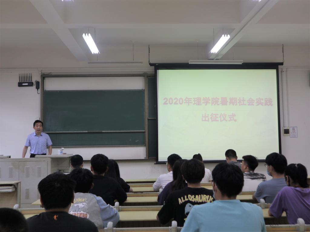 7月22日,理学院在嘉陵江路校区主教学楼B317举行2020年暑期社会实践出征仪式。党总支副书记刘聘、分团委书记李晓辉、辅导员公圆圆和各实践团队代表参加了出征仪式。