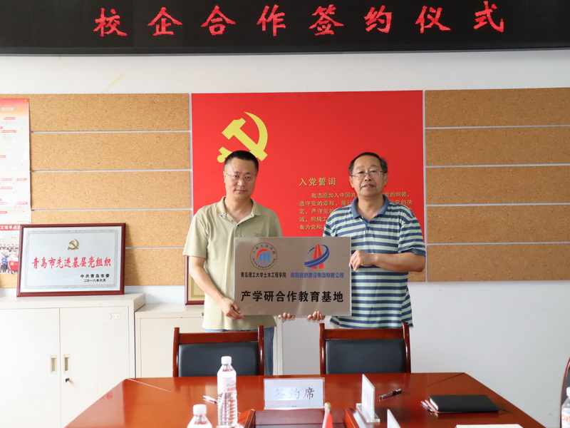 8月12日上午,土木工程学院与青岛路桥建设集团有限公司校企合作签约仪式在1-409会议室举行。路桥公司副总经理于长河、财务部部长薛英俊、企业管理部部长薛飞、设施场财务负责人陈金圣,学校合作发展处副处长张国昌、学院领导班子成员出席仪式。