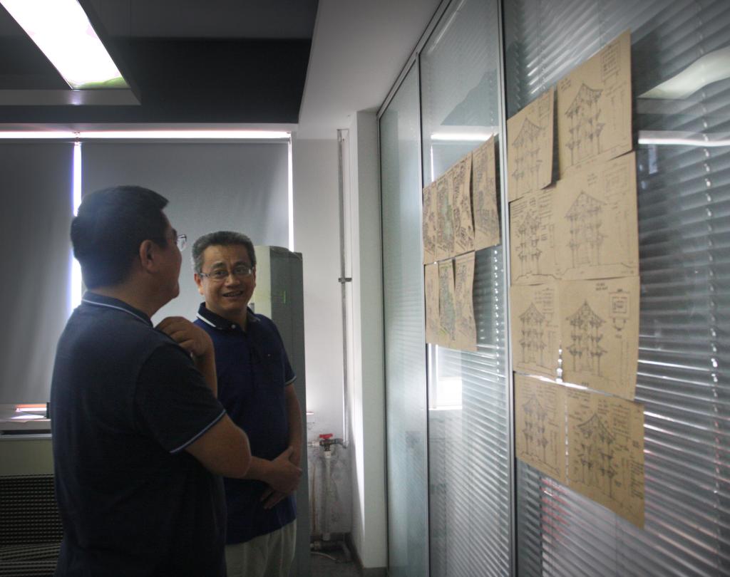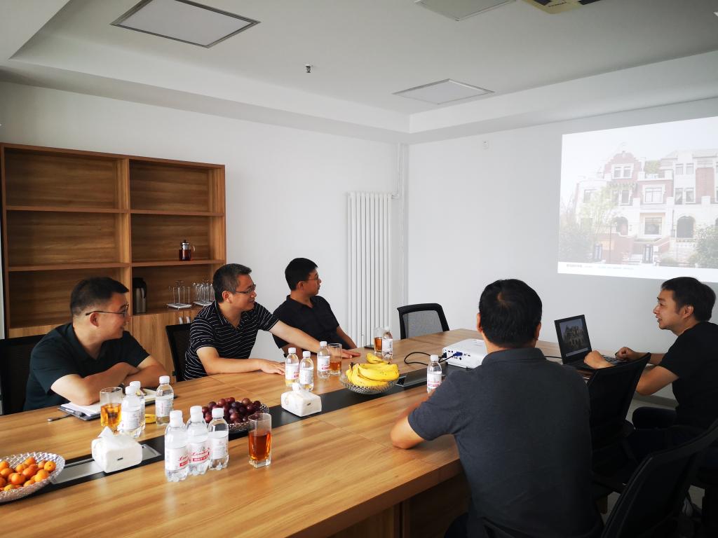 在青岛沃朴建筑设计有限公司,公司负责人城乡规划专业1997级校友方正、建筑学专业1998级校友周鹏周鹏首先对企业的发展历程、承接设计项目等进行了介绍,呈现了沃朴对于做精品设计的追求,期间,他们提到在学校习得的思考方式、学习方法是自己设计工作的基底,十分感恩母校。在交流中,方正、周鹏针对目前国内外经济形势对设计行业的影响表达了自己的观点,他们认为设计类行业在逐步精细化划分需求与设计,以更好的满足人的需求,建筑类专业仍然大有可为,不会担心市场。