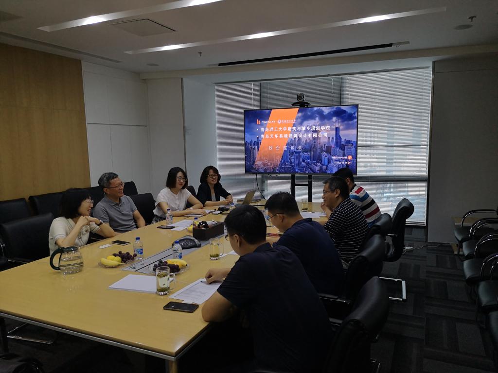 为进一步做好学院“十四五”规划编制调研,提升学院产教融合、校企合作的深度和广度,提高毕业生就业质量,8月21日上午,建筑与城乡规划学院党总支书记肖学斌、副书记高江、办公室主任董昇、分团委书记王鹏飞等一行走访青岛天华易境建筑设计有限公司。