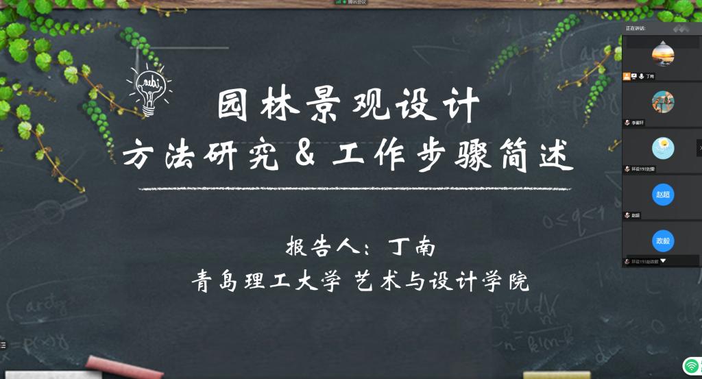8月22日上午,2020年青岛理工大学“科普公益云端讲堂”第十一讲开讲,主题为“园林景观设计方法研究与工作步骤简述”。我校艺术与设计学院丁南教授主讲,艺术与设计学院副院长王春鹏教授主持。至此,2020年青岛理工大学“科普公益云端讲堂”已全部完成。