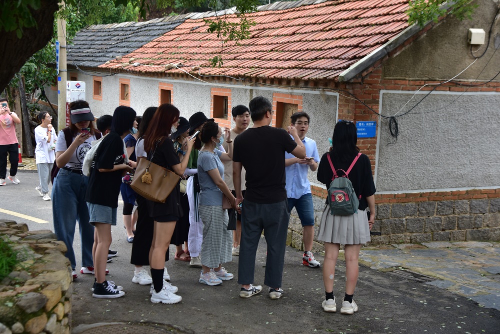8月30日,所有团队成员集结完毕。初来乍到,团队受到了融源杨家山里项目负责人董嵩的热情招待。各团队指导老师根据实践项目具体调研需要做出安排调整,就团队在未来几天的活动内容与负责人进行了沟通,首先保证了各项调研工作的顺利开展。接着,实践团队深入上沟、墩上、黄泥巷三村内部,正式开始实地调研。沿着村中的道路蜿蜒而上,流水、石桥、古井、国樟……杨家山里的神奇风景徐徐展开,董嵩向队员们介绍了村落的许多民俗文化以及村落周边的环境情况,为后期方案设计工作提供了有力帮助。一路上,各个实践队员也毫不马虎,参观了村中现存的古建筑,了解了许多民居背后的历史典故,对村落风貌有了初步的认识,并在指导教师的带领下拍照、记录、不断了解,不停思考。