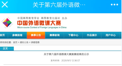 近日,第六届中国外语微课大赛复赛评比结果揭晓,我校人文与外国语学院大学英语教师团队(孙晓燕、莫玉梅、王玺芳、Rachel)荣获山东省二等奖。