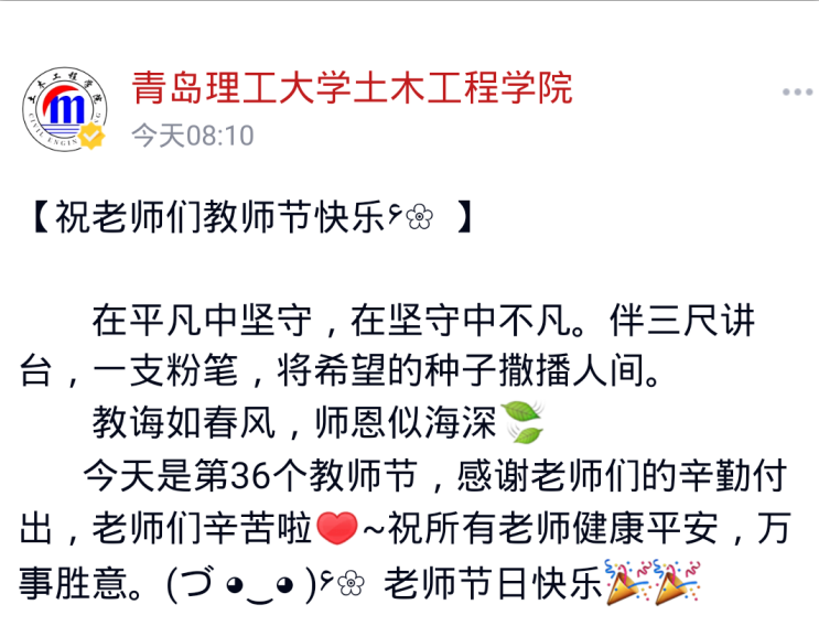 伴随着清晨的朝阳与微风,土木学子的祝福也温润而来。“谢谢您,成为我人生中最美的点缀”、“在平凡中坚守,在坚守中不凡。伴三尺讲台,一支粉笔,将希望的种子撒播人间。” 朴素的话语传递了浓浓的爱,青灯黄卷,师恩难忘!
