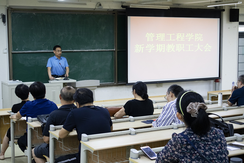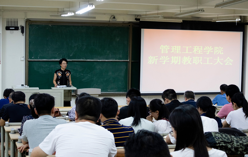 新学期、新起点、新征程。9月9日下午,管理工程学院2020年秋季新学期全院教职工大会在嘉陵江路校区主教学楼B201教室召开。学院班子成员和全体教职工参加会议。会议由党总支书记梁虹主持。