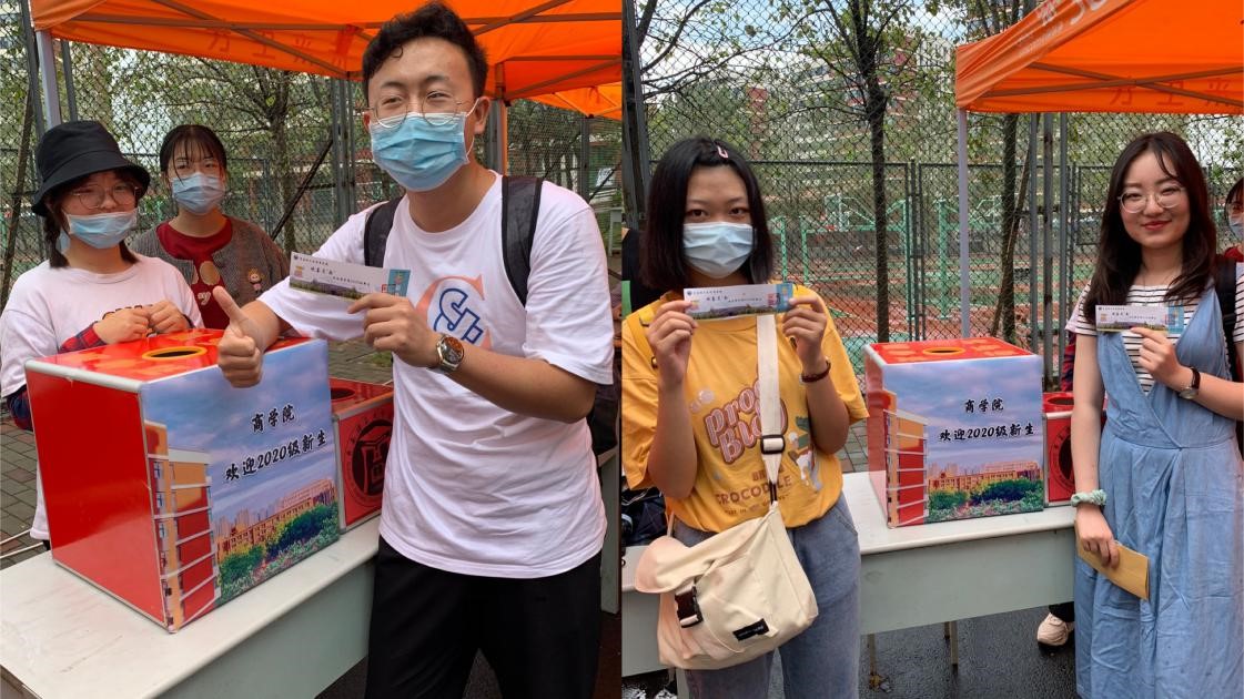 2020是特别的一年,商学院在这特别的一年里也加入了九大新元素——辅导员卡牌、党员先锋岗、预备党员考察岗、入党积极分子实践岗胸贴、商学院学生会胸贴、商学院分团委胸贴、班助与学长证、新生臂章,凡是商院所在之处,各个分工明确、身份了然,九大元素为商学院的迎新路程又多添了几分心意、多增了几分创意。