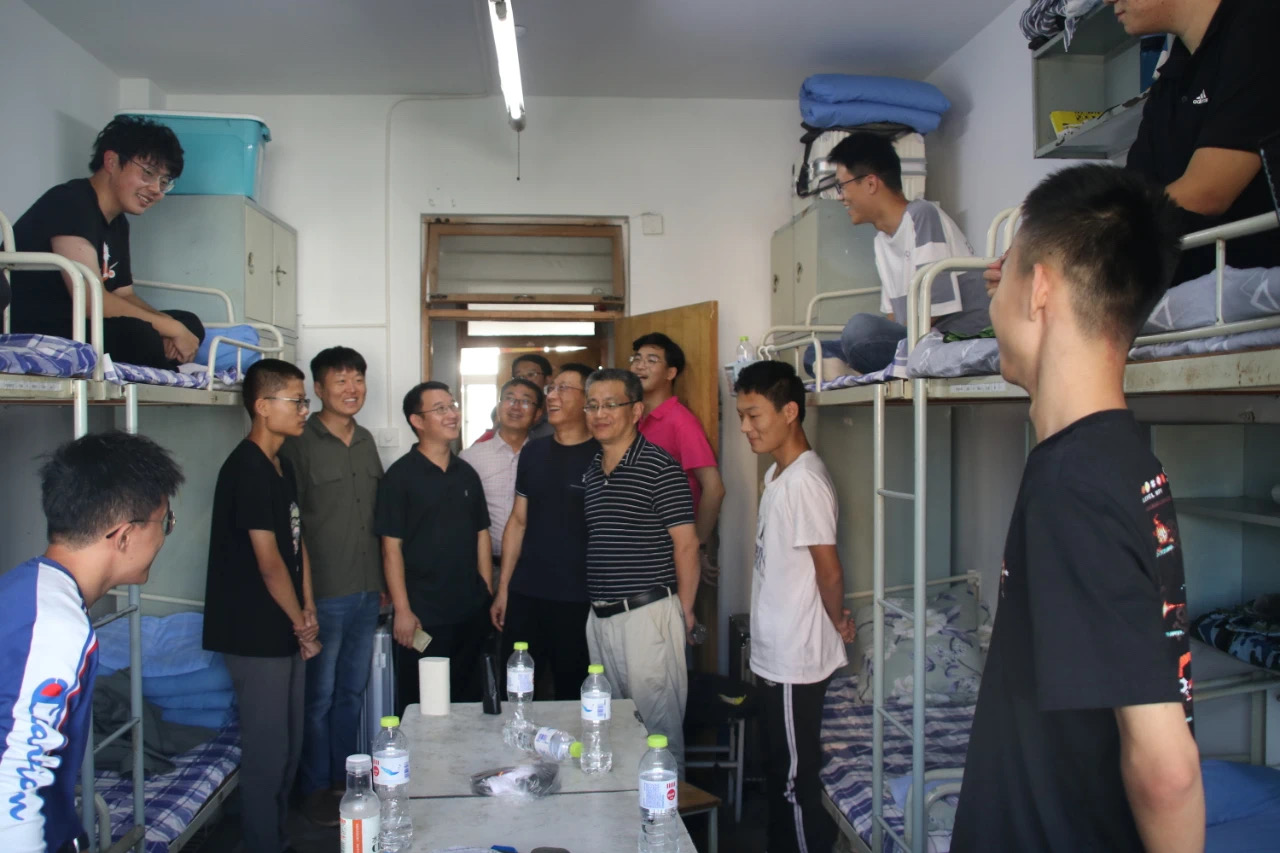 9月12日下午,为引导新生尽快适应新生活新环境,学院党总支书记肖学斌、院长许从宝、党总支副书记高江、副院长朱一荣,学工办主任、分团委书记王鹏飞、各位班主任老师与新生班助共同走访新生宿舍,与新生们进行亲切的交谈,细心地询问他们到校后在住宿、就餐等方方面面的情况,询问他们有无生活上的不适应,了解新生入学后的需求,并特别叮嘱新生军训期间合理饮食、注意身体,有困难及时向辅导员反映。领导们在走访的同时也细心观察宿舍情况,检查风扇是否正常运行,门窗玻璃有无损坏等等。这些温暖的小细节让新生们倍感温暖,寝室里洋溢着师生间融融情谊。