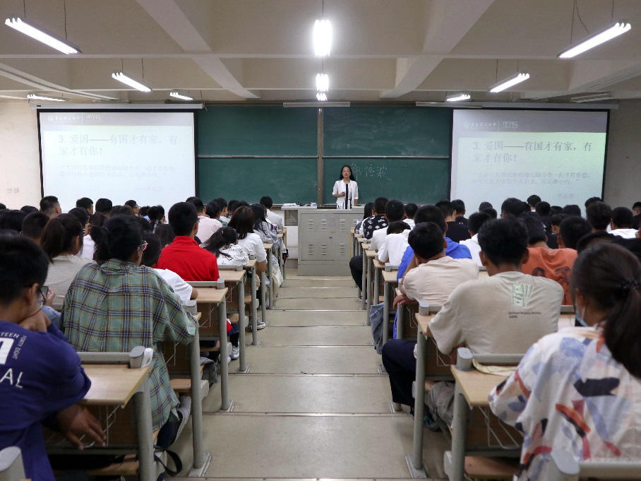 随后,教务处刘伟从学籍、选课、考风考纪、学分认定、违纪处分等方面为大家进行介绍。他指出,《学生手册》是规范学生行为的指南,也是新生了解大学文化的最佳工具,希望大家都能以《学生手册》为标准,守规矩、明底线、知敬畏,争做优秀学子。刘伟表示,每位新生都应学会自省自律、规范自身行为,严格遵守校规校纪,主动学习主动提升自己,自觉践行社会主义核心价值观,树立大学生良好形象。