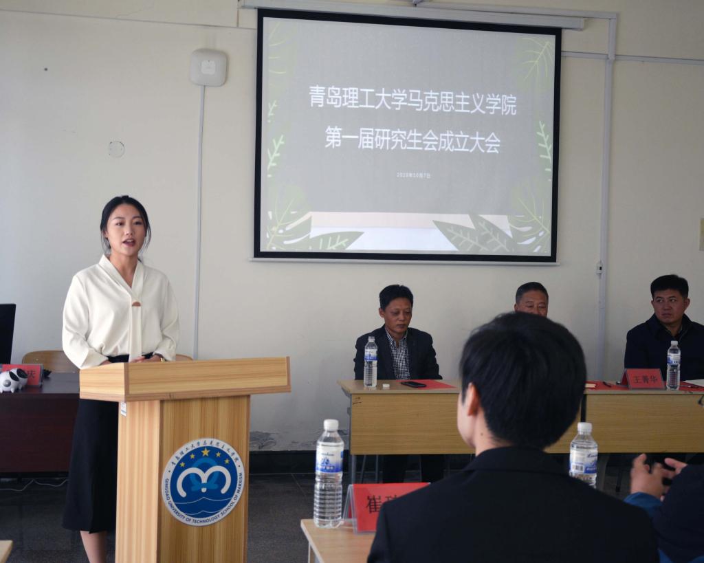 金秋十月,旖旎如画。10月7日下午,马克思主义学院研究生会第一任成立大会在主教学楼A310顺利召开。研究生处副处长宋兆珺、青岛理工大学校团委副书记苏伟、马克思主义学院党总支书记王菁华、辅导员冯明宇、商学院研究生会主席李海桤出席会议。2020届马院研会主席团、各部主任及志愿者参加会议共同见证了这一激动人心的历史性时刻。会议由杨国强同学主持。