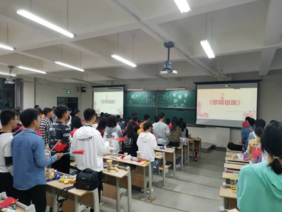 学院在B125设立主会场,晚上7点,联欢活动正式开始。乐起舞动,开场舞时而柔美,时而灵动,紧接而至的热舞串烧瞬间点燃全场,将晚会气氛推向高潮。学生们用歌声向祖国传递着内心深深的崇敬与爱意——《歌唱祖国》庄严肃穆,唱出了大家对祖国深情;《平凡之路》浑厚悠扬,沙哑的男声轻轻唱起梦想,歌声沉稳有力,饱含了对未来的美好憧憬。接下来,学院领导同新生们一起观看晚会节目,积极与新生进行友好互动,现场气氛热烈活跃,处处洋溢着青春的气息。