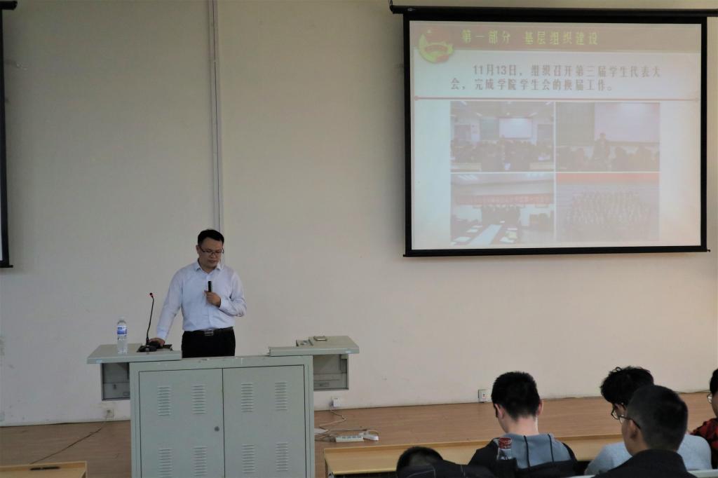 陈永亮为同学们带来题为“汇聚青春力量,奋斗成就梦想”的开学第一课讲座,讲座从基层组织建设、思想引领、第二课堂、疫情防控、计划展望五个部分展开。首先,陈永亮对管理工程学院分团委组成和管理细则作出详细的介绍。继而,提出坚持以中国梦教育、社会主义核心价值观教育、“青马工程”、主题团日活动、青年大学习教育为统领开展大学生思想政治教育工作,并对青年大学习、主题团日活动、“青马工程”活动作出了具体说明。在第二课堂部分,介绍了在科技创新、社会实践、志愿服务、文体活动等多方面表现突出的优秀团队及个人,鼓励同学们积极参加各种竞赛及活动。向同学们展示了管理工程学院在疫情期间的防疫志愿者风采、学院学子为医务人员子女授课等各种活动的画面,帮助同学们深切感受到疫情防控下学校与学院始终同心共力应对疫情的理工精神。最后,陈永亮对学院竞赛方面提出展望,希望同学们勇于拼搏,敢于争先,积极投身于自身建设与学院发展,并预祝同学们度过一个充实、多彩、难忘的大学生活。