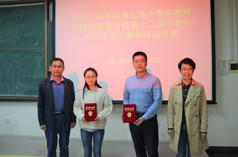 为加强师德师风建设,进一步提高中青年教师教学能力,10月14日,管理工程学院在新校区主教学楼B307教室举行了中青年教师讲课大赛学院选拔赛。这次比赛由学院领导、学院教学指导委员会成员代表担任评委,来自7个专业的15名老师参加了讲课比赛,部分教师到场观摩。比赛由教学副院长申建红教授主持。