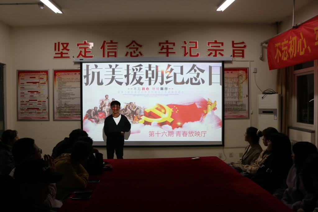 10月25日,信息与控制工程学院于7公寓党员活动室举办抗美援朝70周年主题观影活动,纪念在抗美援朝战争中牺牲的巍巍烈士。