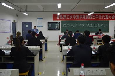 10月31日下午,理学院第四次学生代表大会在嘉陵江路校区顺利召开。党总支副书记刘聘、分团委书记李晓辉、辅导员袁洪孝、校学生会代表苗泽林、嘉陵江路校区兄弟学院学生会代表以及学院59名学生代表共同参加了本次代表大会。会议由李晓辉主持。